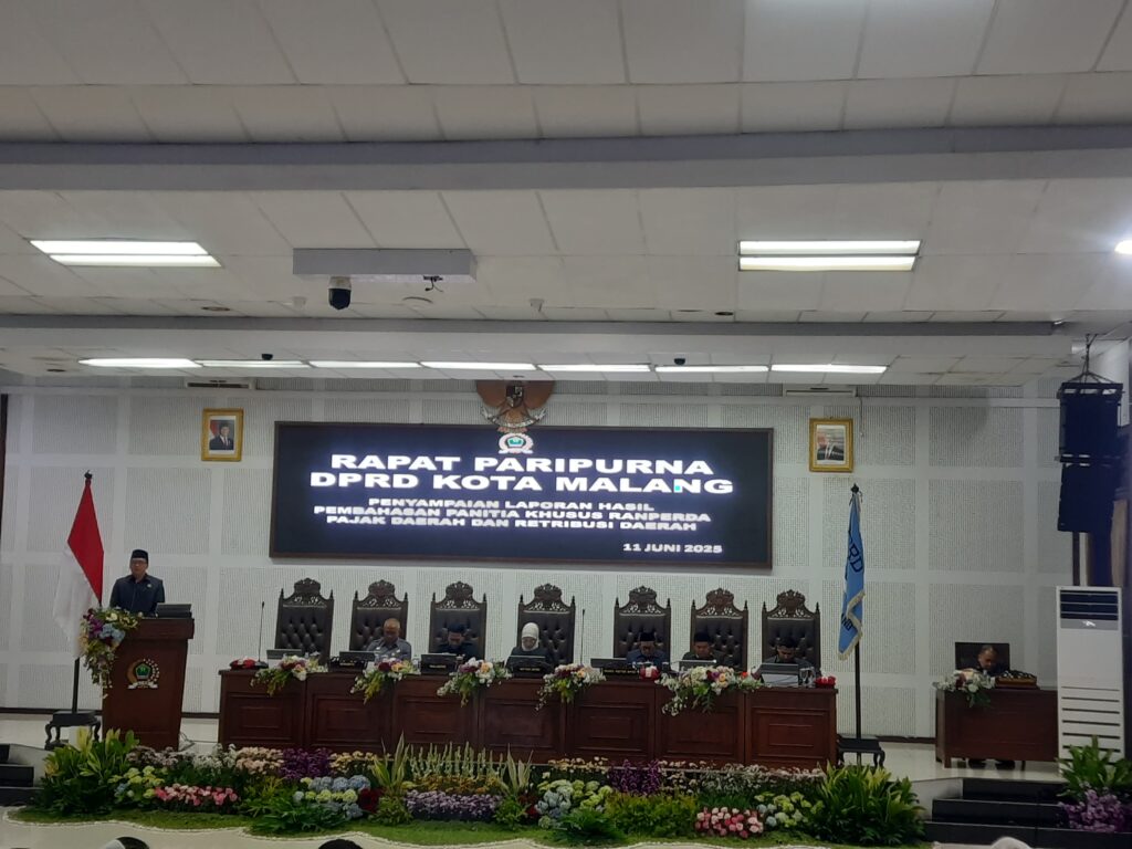 Kota Malang – Dewan Perwakilan Rakyat Daerah (DPRD) Kota Malang menggelar Rapat Paripurna dengan agenda penyampaian laporan hasil pembahasan Panitia Khusus (Pansus) terhadap Rancangan Peraturan Daerah (Ranperda) tentang Pajak Daerah dan Retribusi Daerah (PDRD), Rabu (11/6/2025).
